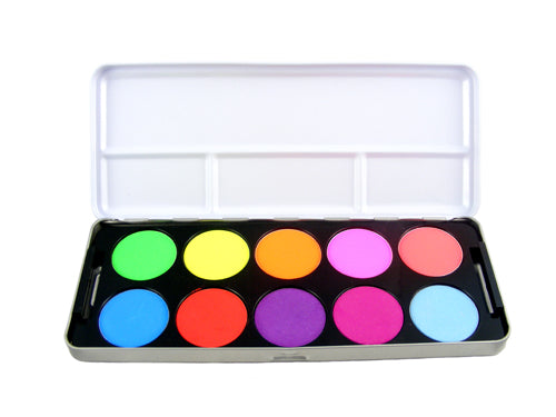 This vivid colour palette is pre-made with great eye-catching colours for bright make up work! The ULTIMATE raver make up palette. If this isn't in your make up collection yet, order it now! Bursting with rich, vibrant and UV colours each a decent size to last many a rave or party! A large selection of these wonderfully stunning eye shadows, but compacted in to a fantastic quality metal tin meaning you can pop it in your hand bag, or suitcase! The options are endless! Whatever you do, make sure you take one of these gorgeous, must have palettes today.